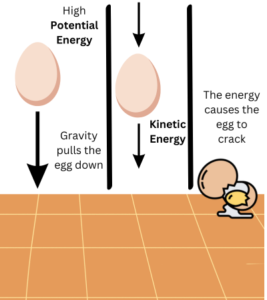 In the Egg Drop Challenge, we’re exploring the scientific principles of force and energy transfer. When the egg is dropped, gravity pulls it towards the ground, and it gains potential energy as it falls. As it hits the ground, this potential energy is converted into kinetic energy, which can potentially crack the egg.