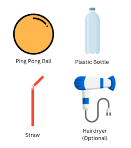 Welcome to the exciting world of levitating ping pong balls! In this experiment, you’re going to make a ping pong ball float using nothing but a plastic bottle, a bendy straw, and the power of your own breath. If you want to see the magic of air pressure in full action, you can also use a hairdryer!